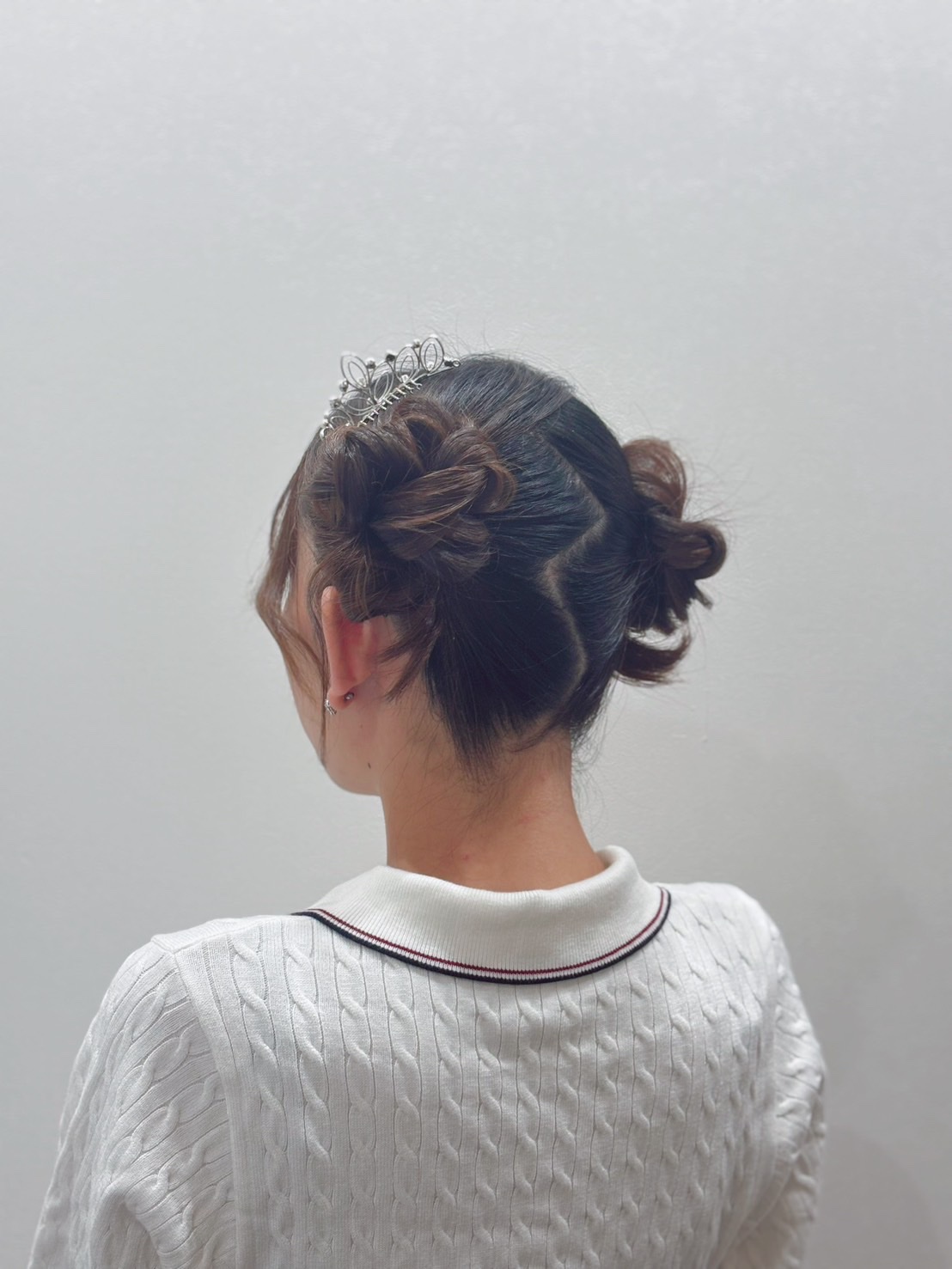 前からもお団子が見えたりとどこからみてもかわいらしいヘアスタイル。