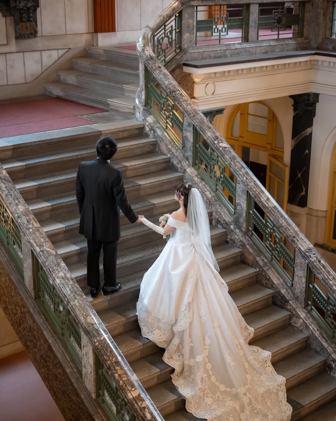 大階段はトレーンの長いドレスがよく映えます。
